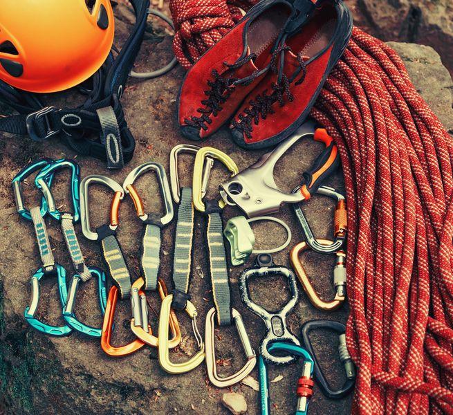 What does rock climbing equipment include?