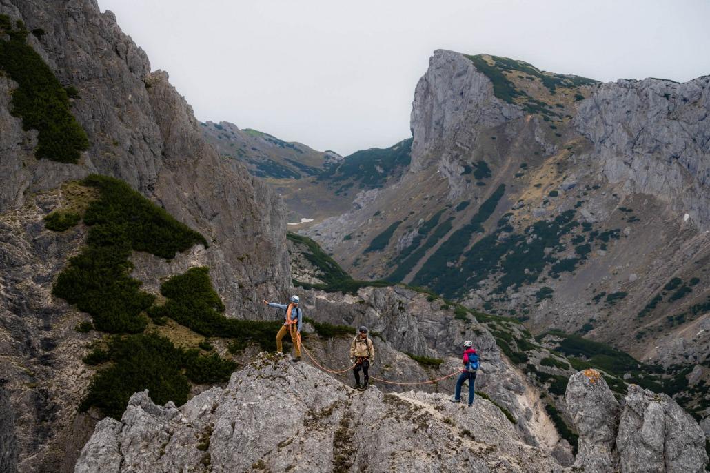 On this point, your guide will attach you to the rope so you could safely climb the ridge. You will traverse approximately 4-6h Stanicev vrh to Srebrno sedlo, it depends on your level of preparation. Despite the lower altitude, the ridge has beautiful views of neighbouring mountains and the Julian Alps, which are partly located in Triglav National Park. The depth on each side of the ridge is another exceptional feature.