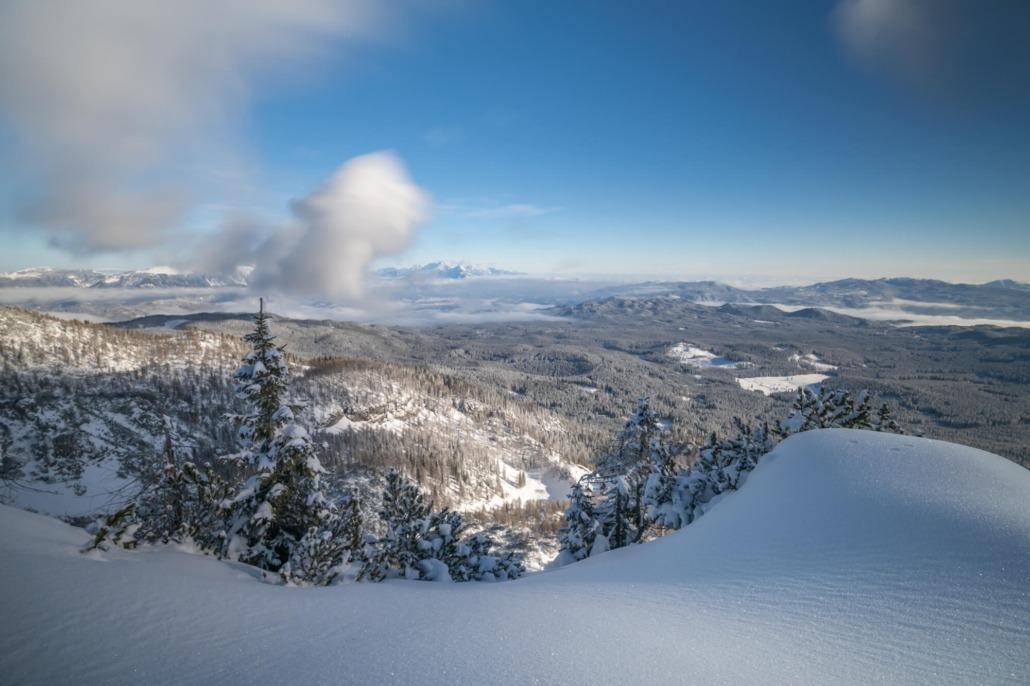 The Pokljuka plateau in the Julian Alps is incredibly wonderful when covered in snow. At Zajavorniki mountain pasture, we will have beautiful views of the highest peaks of the Julian Alps.